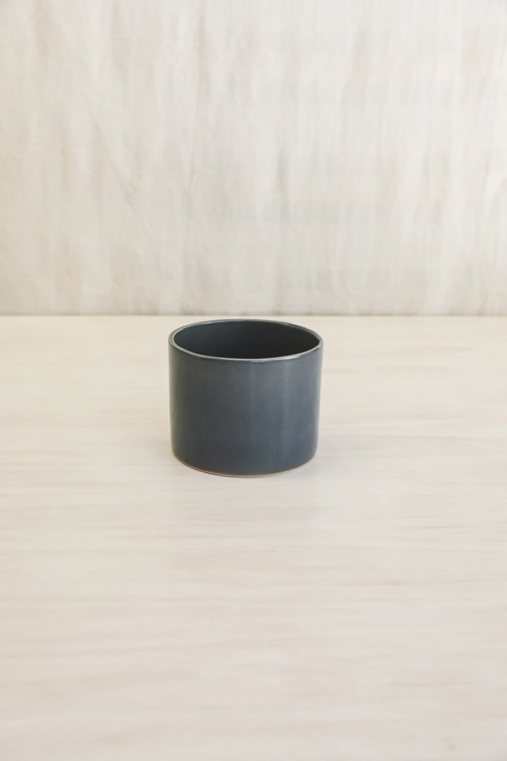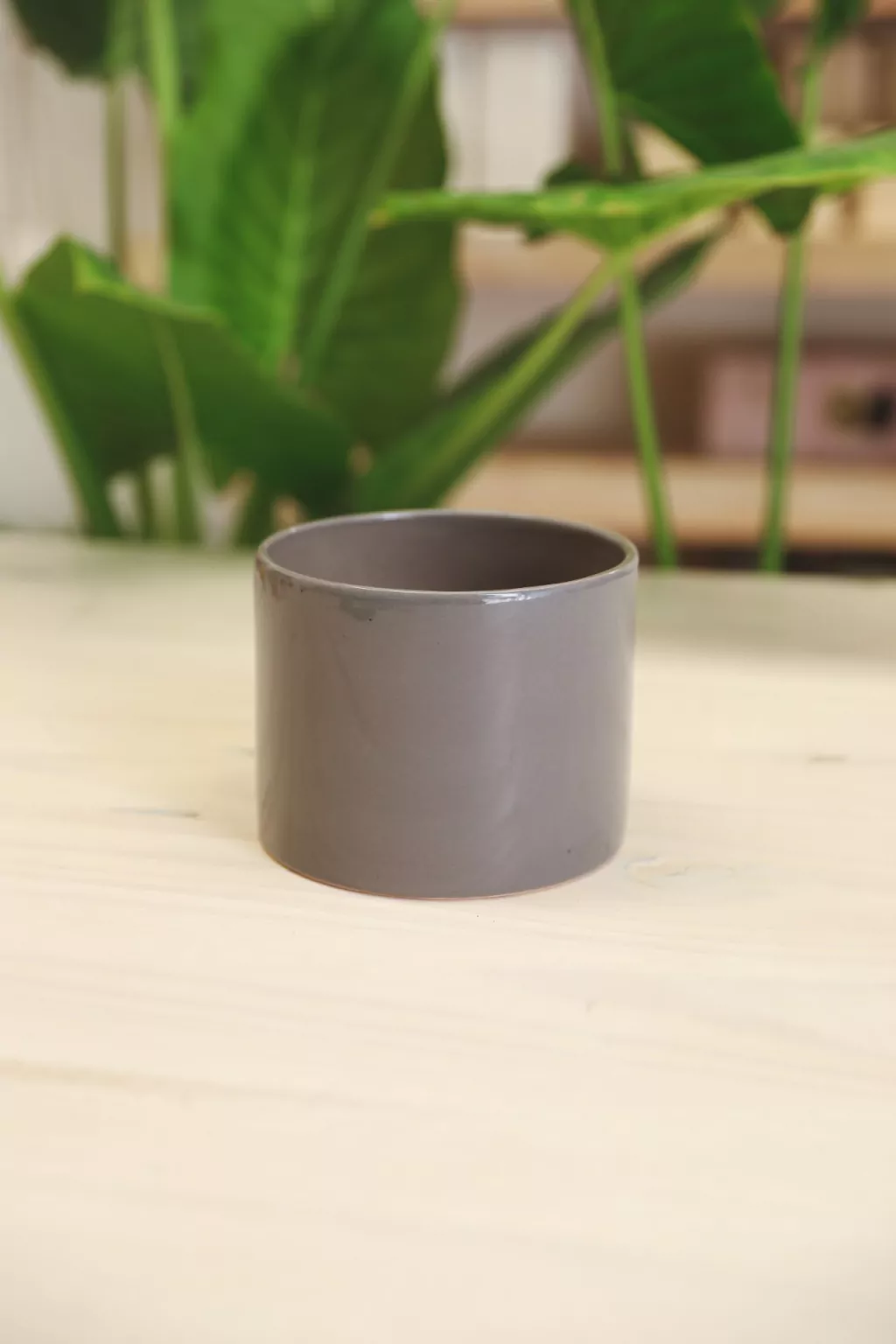 Maceta cilíndrica de cerámica esmaltada a mano.